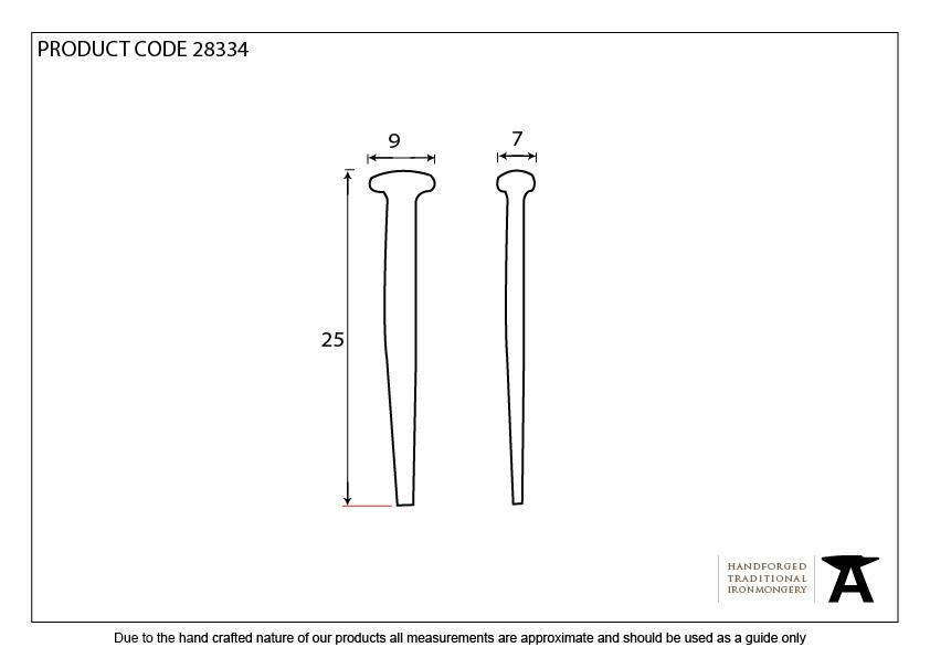 Size: 25mm Head Size: 9mm x 7mm Our collection of nails and studs are highly decorative and are often used to enhance furniture or add character to entrance doors. Available in five different sizes. Sold in kilos, average quantity of 475 per kg.