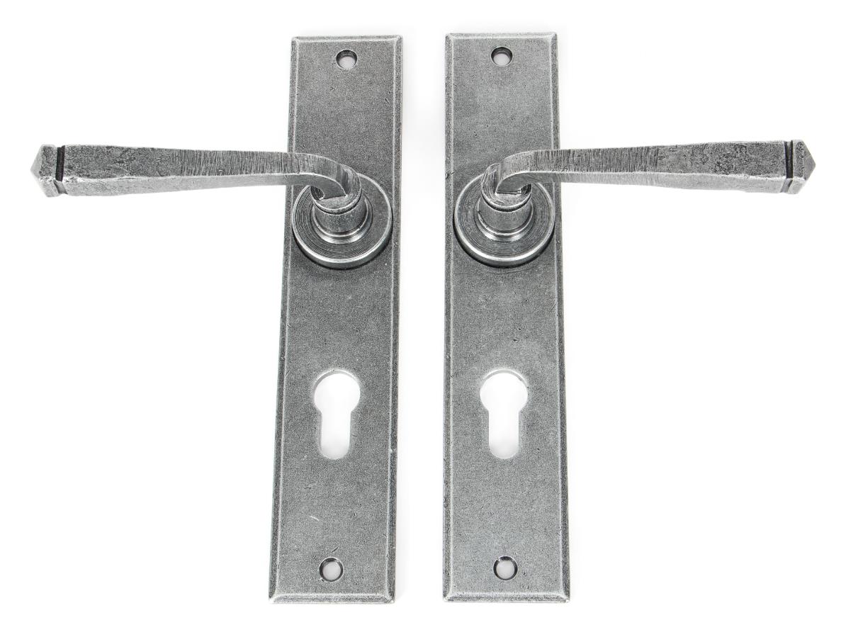 Fixing Centres: 215mm Our avon lever handles are our signature design and are extremely popular for their simplicity. The lever is hammered into shape by hand, giving it a contemporary yet individual edge. Designed to match the avon window furniture in the range. This handle has a strong spring incorporated into the stylish boss design to give both functionality & elegance. Lever handle for internal and external doors where locking is required. Set includes 2 72mm centre lever euro handles. Can be used with a euro DIN sash lock. Supplied with matching SS bolt through fixings.