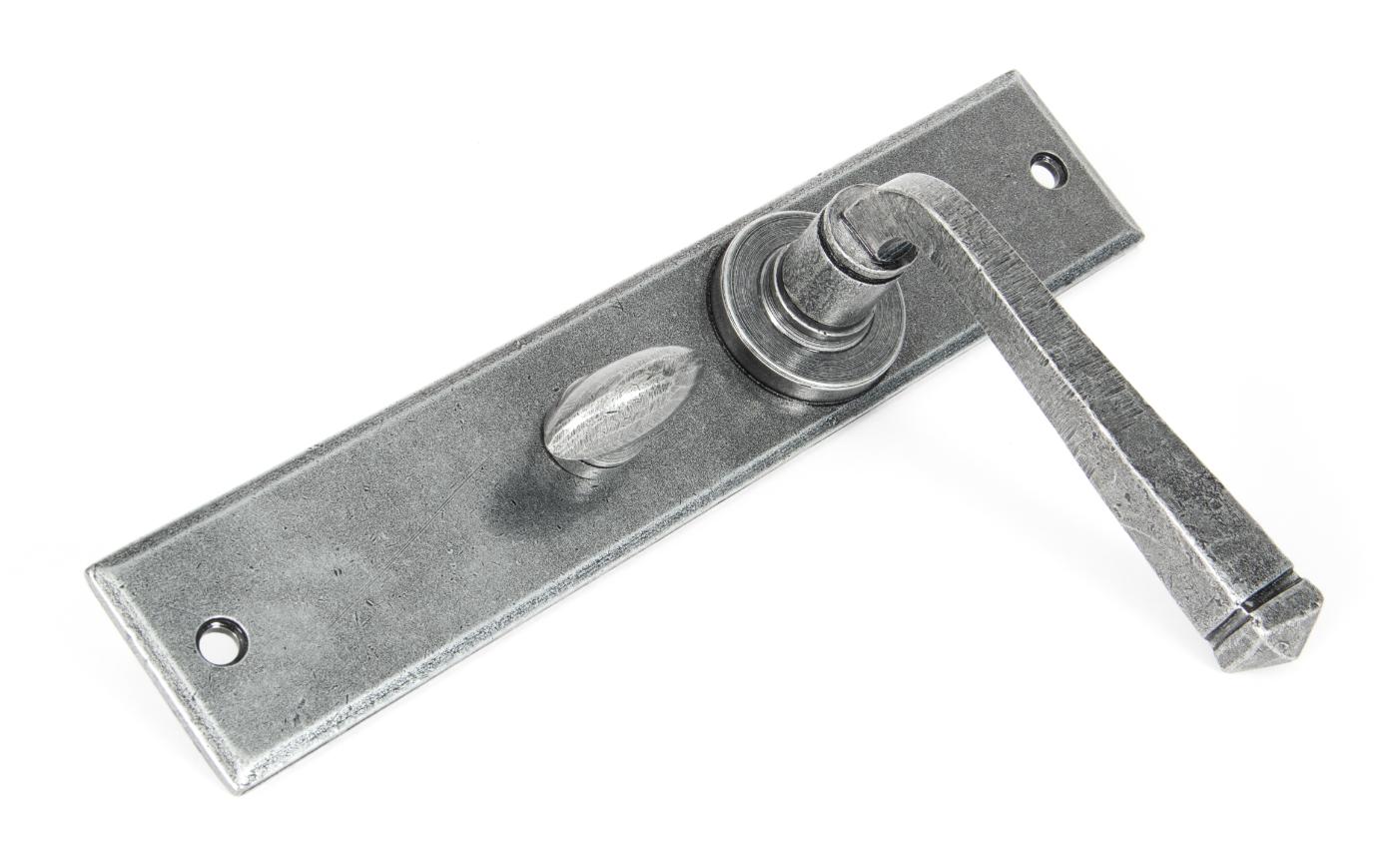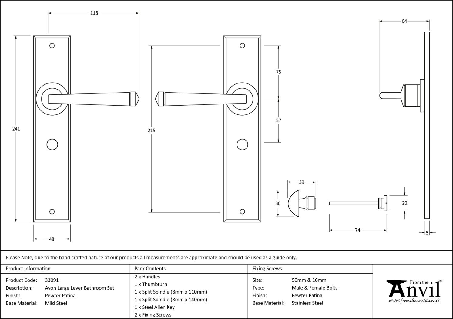 Fixing Centres: 215mm Our avon lever handles are our signature design and are extremely popular for their simplicity. The lever is hammered into shape by hand, giving it a contemporary yet individual edge. Designed to match the avon window furniture in the range. This handle has a strong spring incorporated into the stylish boss design to give both functionality & elegance. Lever handle for internal doors where privacy is required. Set includes 2 lever bathroom handles and coin and release thumbturn. Can be used with a bathroom mortice lock. Supplied with matching SS wood screws.