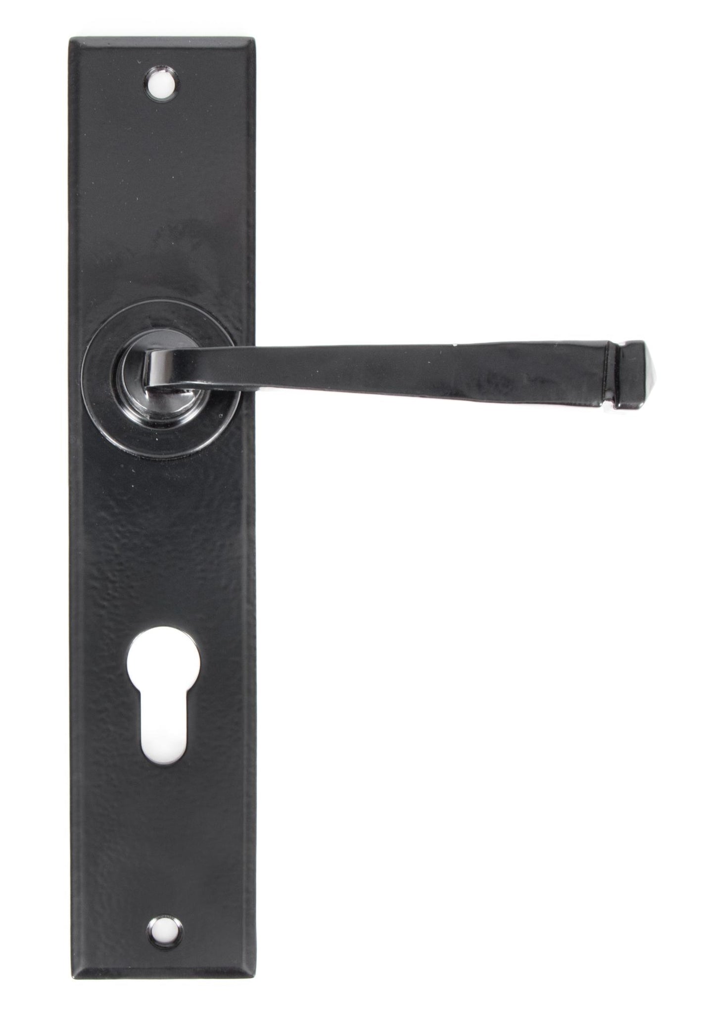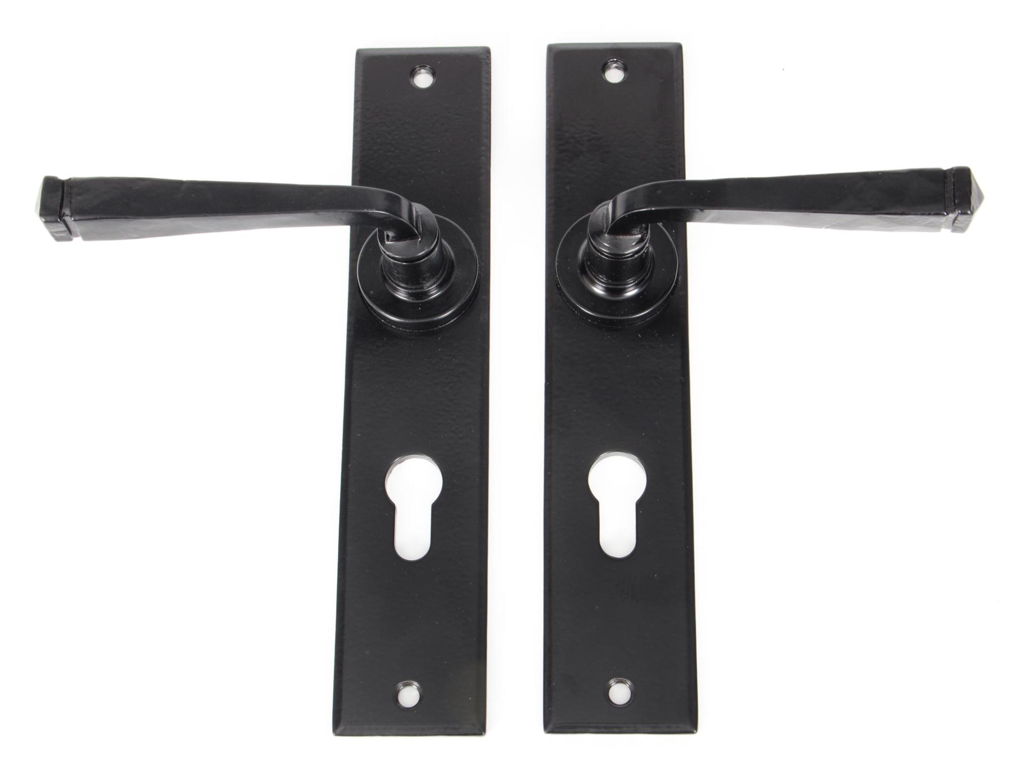 Fixing Centres: 215mm Our avon lever handles are our signature design and are extremely popular for their simplicity. The lever is hammered into shape by hand, giving it a contemporary yet individual edge. Designed to match the avon window furniture in the range. This handle has a strong spring incorporated into the stylish boss design to give both functionality & elegance. Lever handle for internal and external doors where locking is required. Set includes 2 72mm centre lever euro handles. Can be used with a euro DIN sash lock. Supplied with matching SS bolt through fixings.