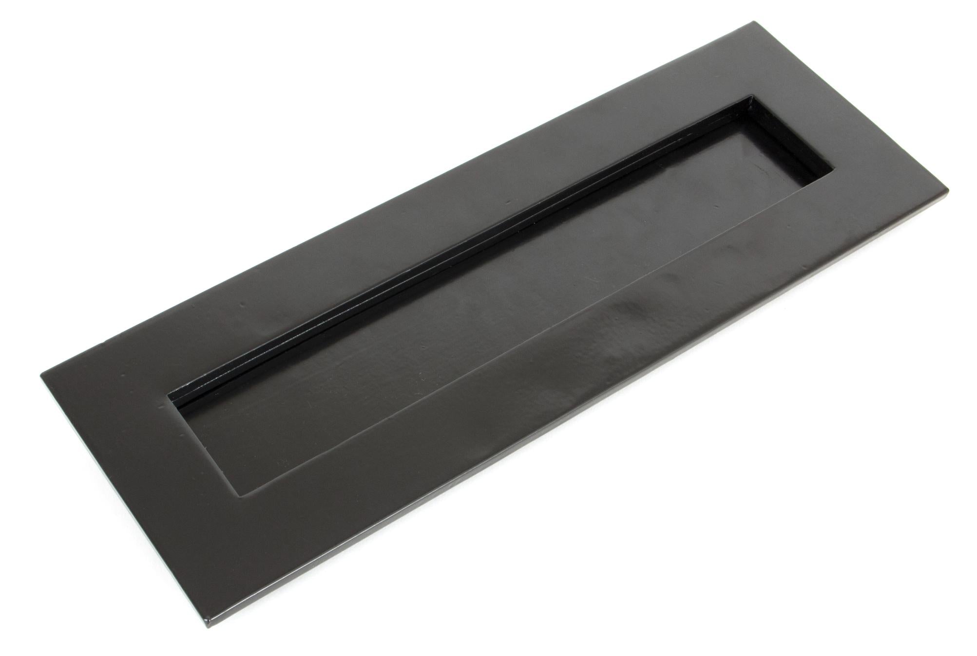 Letterplate Thickness: 5mm Our traditional letterplates & covers are an attractive option for numerous door types. For more traditional doors we have a separate system where the letterplate is fitted to the external side of the door and a letterplate cover is fitted to the internal side to reduce drafts. Designed to match our other black front door furniture to create a feature entrance door. Maximum door thickness: 74mm. Supplied with matching 80mm threaded bolts with dome headed caps.
