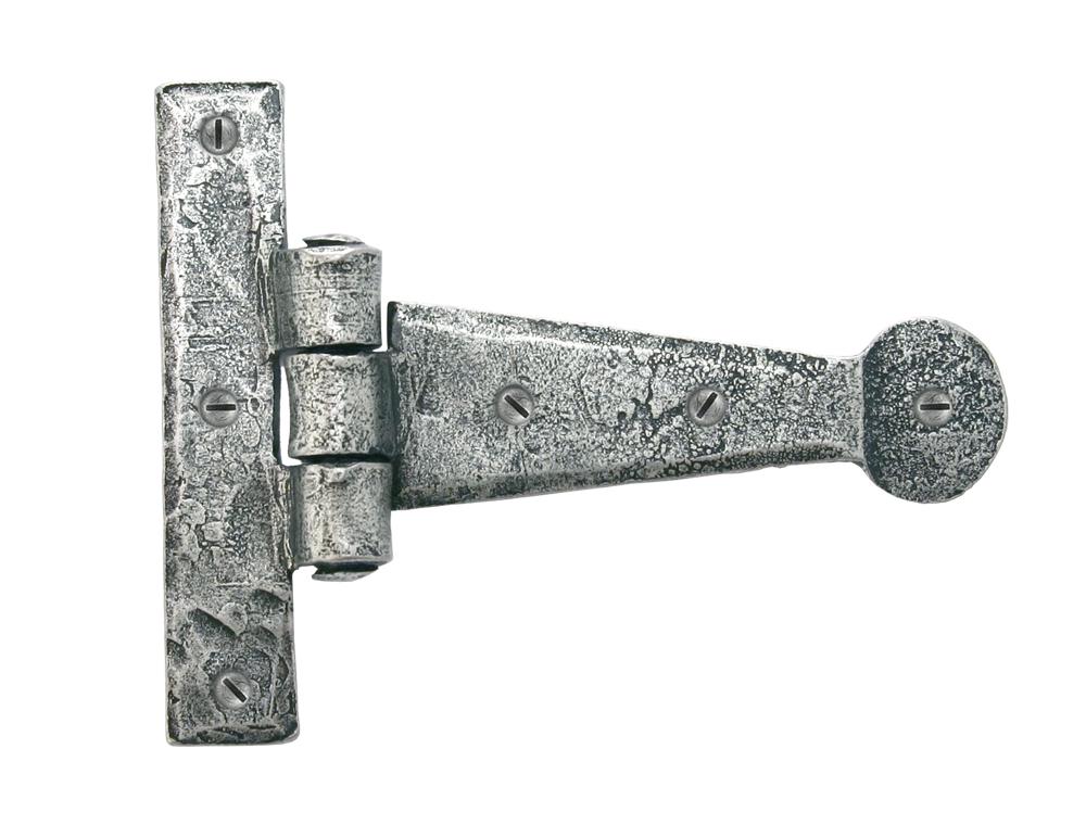 Fixing Plate: 82mm x 16mm When opened a t hinge has the appearance of a letter 'T'. An alternative to butt hinges, tee hinges are usually used in conjunction with a suffolk latch on traditional plank doors. Designed to match our bean d handles. Our blacksmith t hinges are hammered into shape from mild steel using the traditional manufacturing method of an anvil and fire. Supplied as a pair. Supplied with matching SS wood screws.
