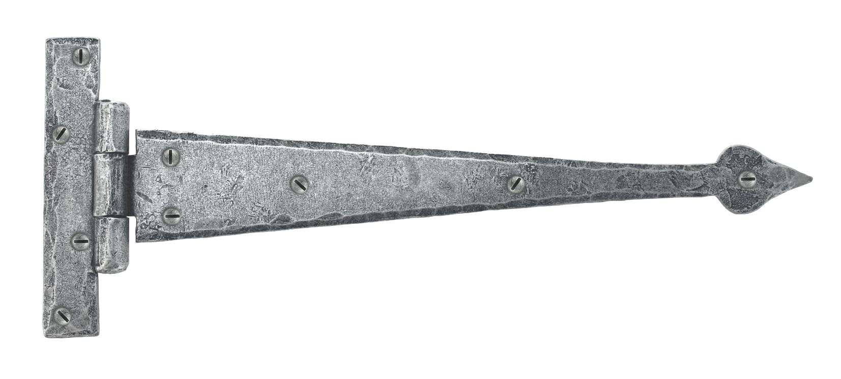 Fixing Plate: 120mm x 23mm When opened a tee hinge has the appearance of a letter 'T'. An alternative to butt hinges, tee hinges are usually used in conjunction with a suffolk latch on traditional plank doors. Designed to match our gothic thumblatches and d handles. A pair and a half (3 hinges) can be fitted to provide extra strength for heavier doors. Our blacksmith tee hinges are hammered into shape from mild steel using the traditional manufacturing method of an anvil and fire. Supplied as a pair. Supplied with matching SS wood screws.