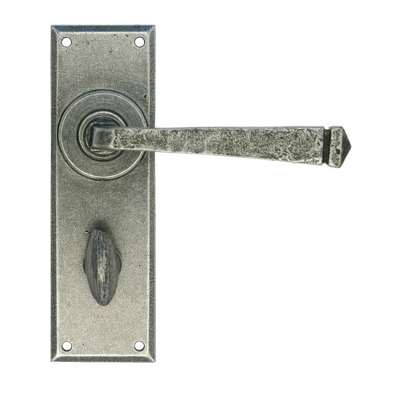 Centres: 57mm Our avon lever handles are our signature design and are extremely popular for their simplicity. The lever is hammered into shape by hand, giving it a contemporary yet individual edge. Designed to match the avon window furniture in the range. This handle has a strong spring incorporated into the stylish boss design to give both functionality & elegance. Lever handle for internal doors where privacy is required. Set includes 2 lever bathroom handles and coin and release thumbturn. Can be used with a bathroom mortice lock. Supplied with matching SS wood screws.