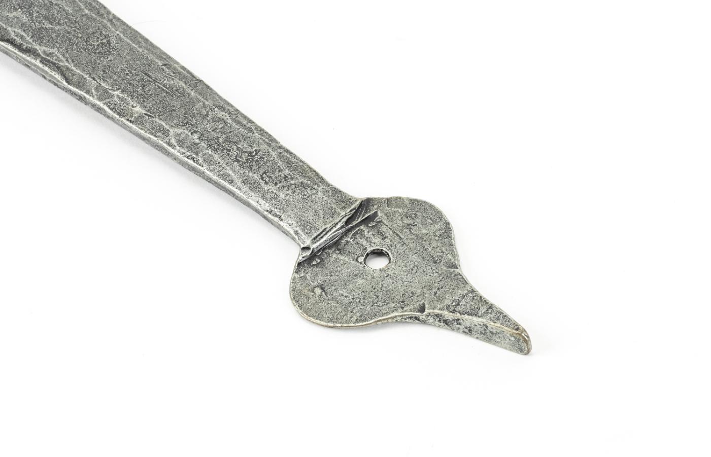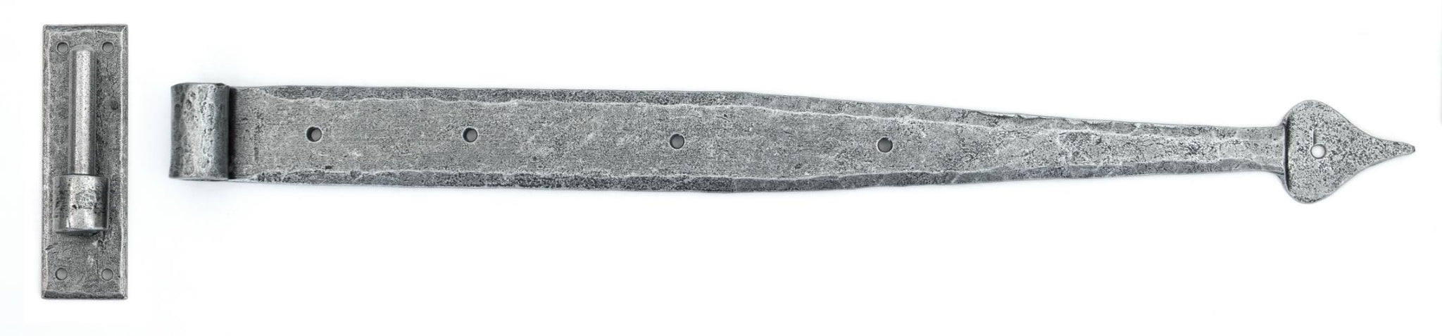Pin Diameter: 15mm When opened a tee hinge has the appearance of a letter 'T'. An alternative to butt hinges, tee hinges are usually used in conjunction with a suffolk latch on traditional plank doors. Our blacksmith tee hinges are hammered into shape from mild steel using the traditional manufacturing method of an anvil and fire. Band is hinged on a pin which is attached to a fixing plate. Fixing plate must be morticed into your door frame. Suitable for heavy doors and gates. Supplied as a pair. Supplied with matching SS wood screws.