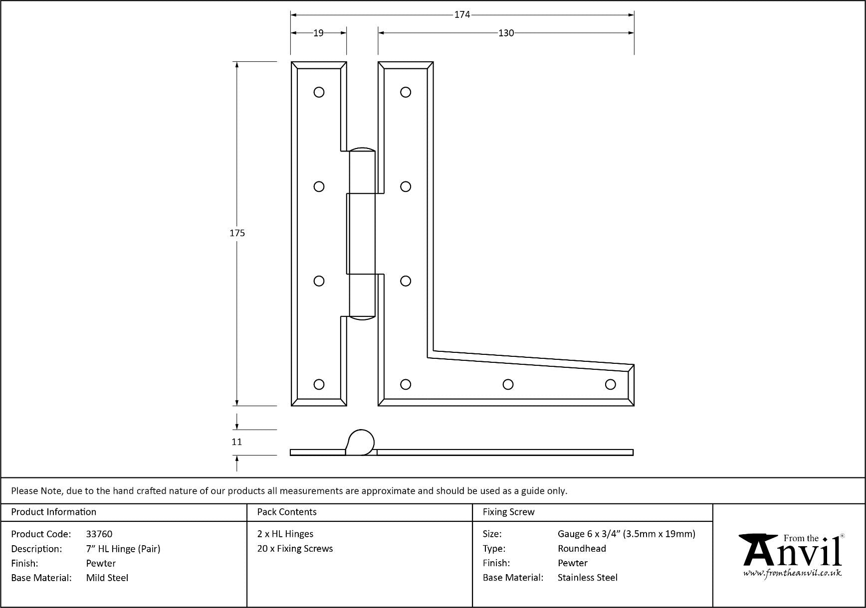 33760 Pewter 7" HL Hinge (pair)