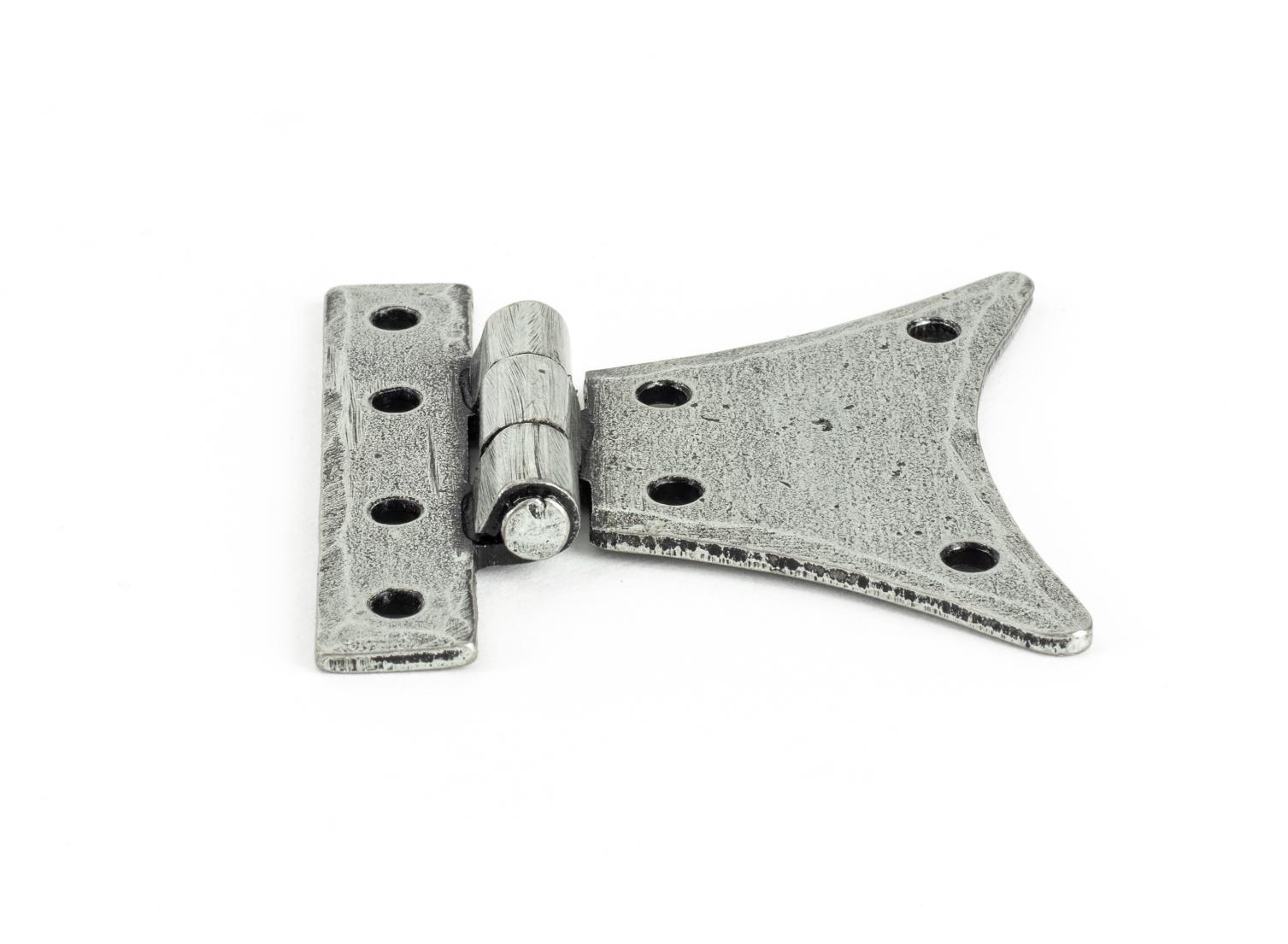 Hinge Arm: 51mm x 32mm A decorative hinge with 'wings' resembling those of a butterfly. Perfect for enhancing the look of any kitchen cupboard or piece of ornamental furniture. One wing has been replaced with a half butt hinge, making it easier to mount in restricted spaces. A pair and a half (3 hinges) can be fitted to provide extra strength for heavier applications. Supplied as a pair. Supplied with matching SS wood screws.