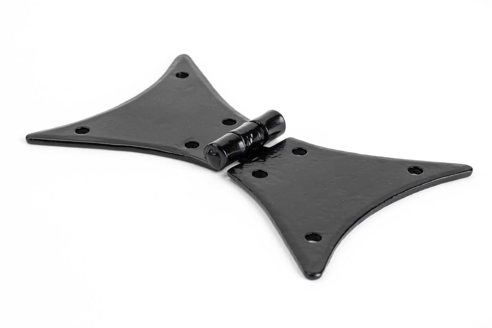 Hinge Arm: 83mm x 57mm A decorative hinge with 'wings' resembling those of a butterfly. Perfect for enhancing the look of any kitchen cupboard or piece of ornamental furniture. A pair and a half (3 hinges) can be fitted to provide extra strength for heavier applications. Supplied as a pair. Supplied with matching SS wood screws.