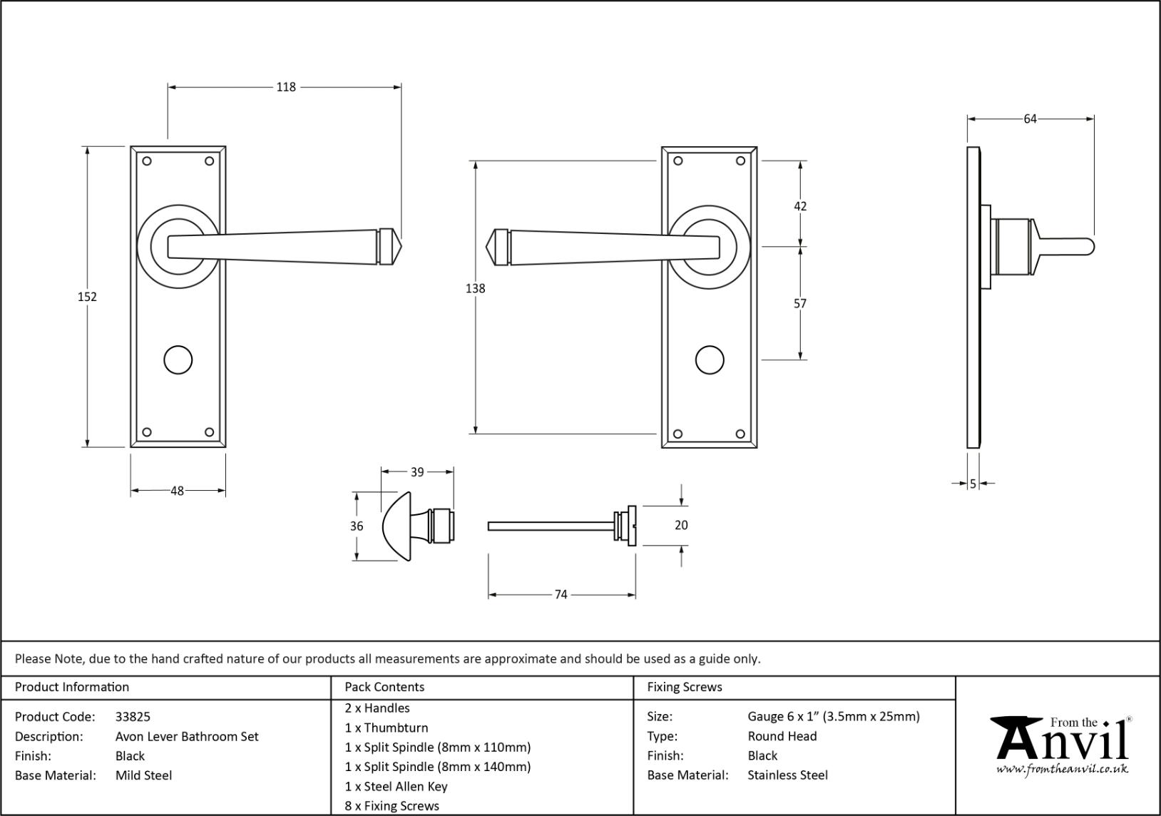 Centres: 57mm Our avon lever handles are our signature design and are extremely popular for their simplicity. The lever is hammered into shape by hand, giving it a contemporary yet individual edge. Designed to match the avon window furniture in the range. This handle has a strong spring incorporated into the stylish boss design to give both functionality & elegance. Lever handle for internal doors where privacy is required. Set includes 2 lever bathroom handles and coin and release thumbturn. Can be used with a bathroom mortice lock. Supplied with matching SS wood screws.
