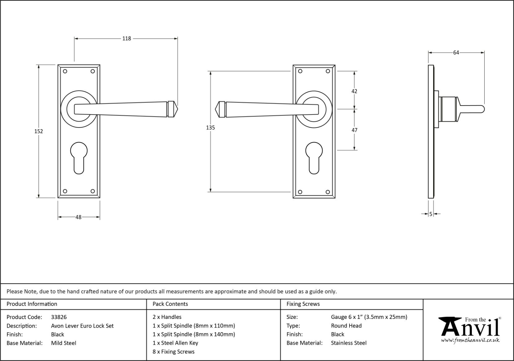 Centres: 47mm Our avon lever handles are our signature design and are extremely popular for their simplicity. The lever is hammered into shape by hand, giving it a contemporary yet individual edge. Designed to match the avon window furniture in the range. This handle has a strong spring incorporated into the stylish boss design to give both functionality & elegance. Lever handle for internal and external doors where locking is required. Set includes 2 lever euro handles. Can be used with an euro sash lock in conjunction with a euro cylinder. Supplied with matching SS wood screws.