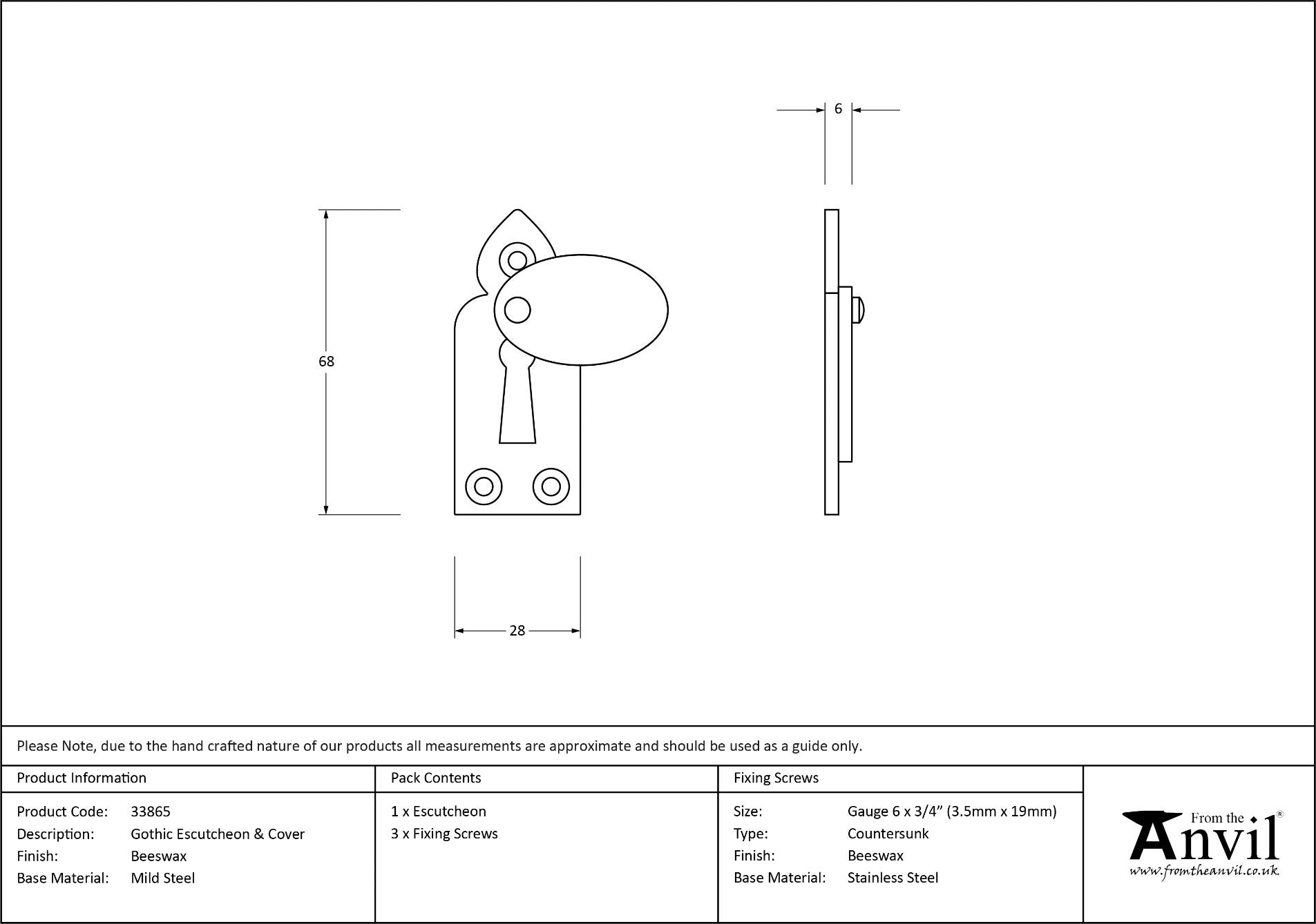 Cover Thickness: 2mm Our vast range of escutcheons are designed as a finishing touch for all locking doors and are used to decorate key holes. Our escutcheons complement all of our mortice knob and lever on rose designs. This escutcheon uses a standard key hole so can be used with a multitude of locks. Supplied with matching SS wood screws.