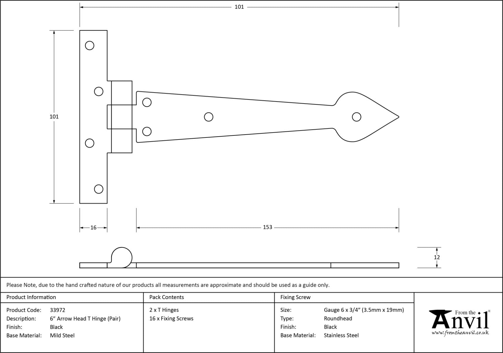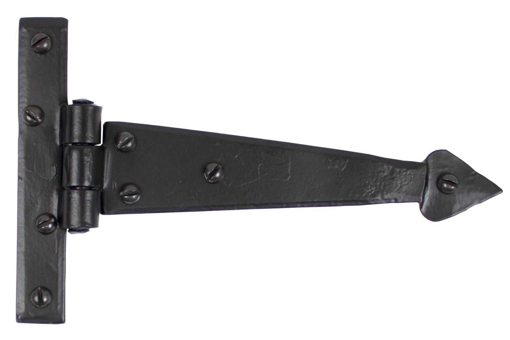 Fixing Plate: 102mm x 17mm When opened a t hinge has the appearance of a letter 'T'. An alternative to butt hinges, tee hinges are usually used in conjunction with a suffolk latch on traditional plank doors. Designed to match our gothic d handles. Our blacksmith t hinges are hammered into shape from mild steel using the traditional manufacturing method of an anvil and fire. Supplied as a pair. Supplied with matching SS wood screws.
