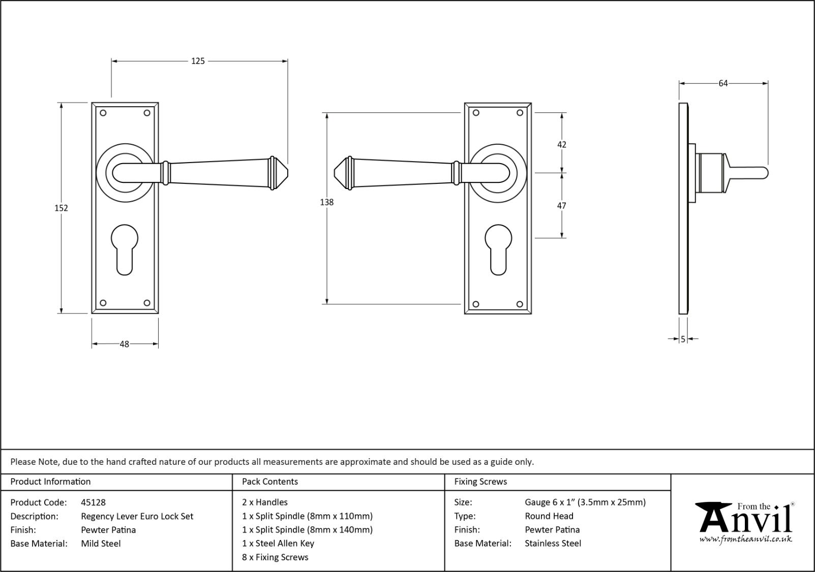 Centres: 47mm Our regency lever collection is a popular choice for many properties and features a simple square edged backplate, which is complemented with a smooth rounded lever. Designed to match the regency window furniture in the range. This handle has a strong spring incorporated into the stylish boss design to give both functionality & elegance. Lever handle for internal and external doors where locking is required. Set includes 2 lever euro handles. Can be used with an euro sash lock in conjunction with a euro cylinder. Supplied with matching SS wood screws.