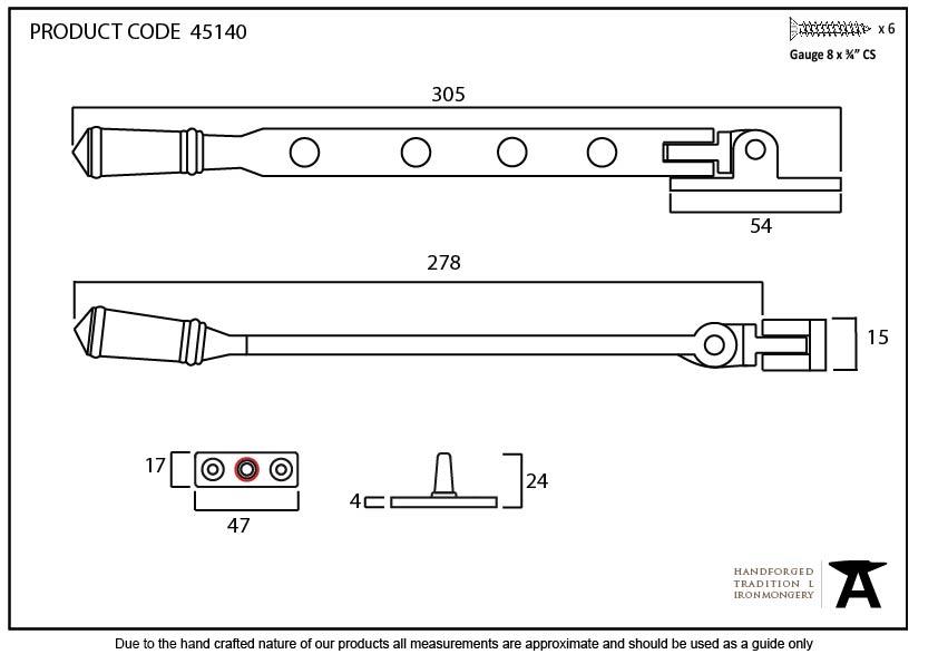 Fixing Plate: 54mm x 15mm The smooth rounded appearance of this stay gives a simple and contemporary stay option for any property. Designed to match the regency night vent fastener and door handles in the range. Available in three different sizes. Supplied with matching SS wood screws.