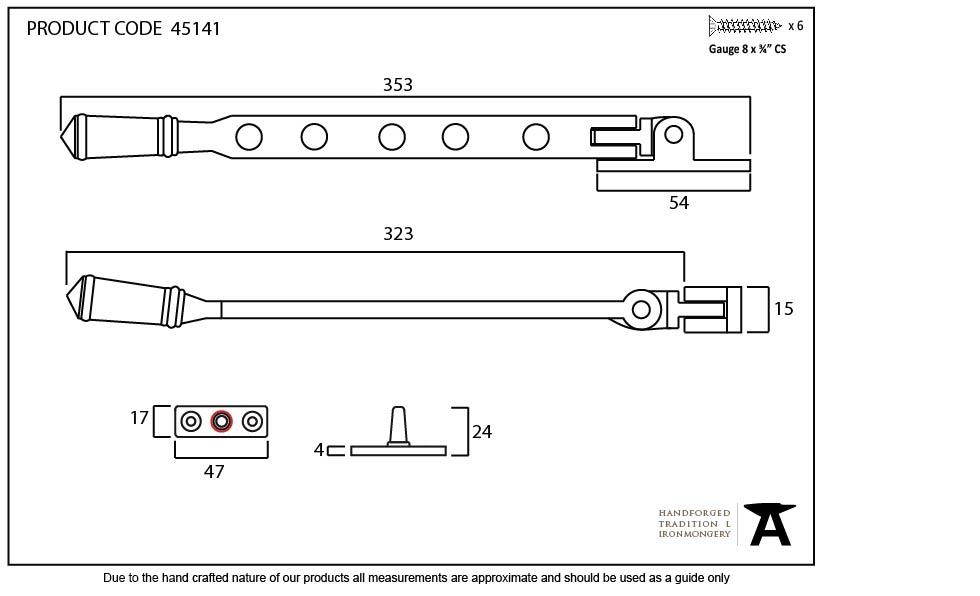 Fixing Plate: 54mm x 15mm The smooth rounded appearance of this stay gives a simple and contemporary stay option for any property. Designed to match the regency night vent fastener and door handles in the range. Available in three different sizes. Supplied with matching SS wood screws.