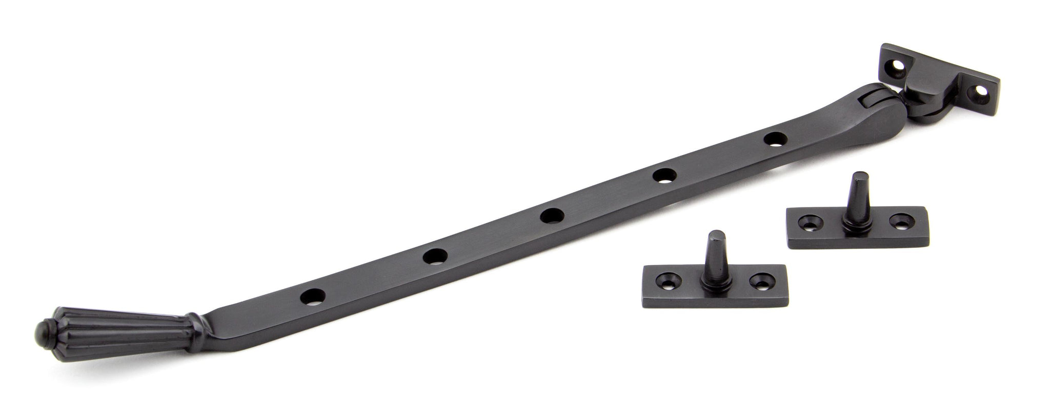 Fixing Plate: 45mm x 16mm The hinton stay is part of the period range of window furniture. A decorative Georgian design that will suit any setting. Our weighty hinton window stay is forged from solid bronze which emphasises the high quality materials and manufacturing techniques used. A perfect design choice to use throughout your property with many other matching products available. Designed to match the hinton window furniture. Available in three different sizes. Supplied with matching SS wood screws.