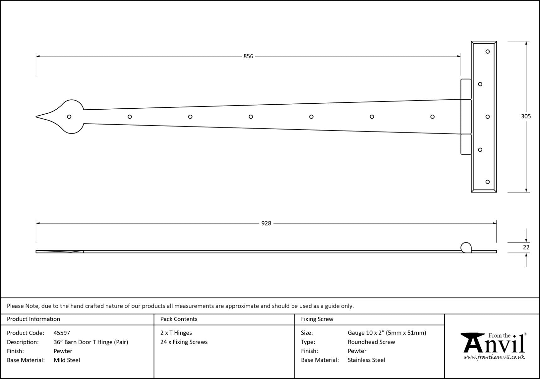 45597 Pewter 36" Barn Door T Hinge (pair)