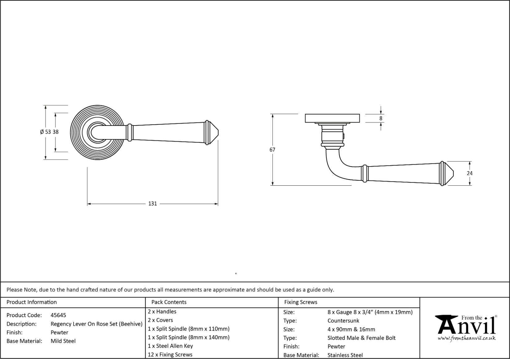 45645 Pewter Regency Lever on Rose Set (Beehive)