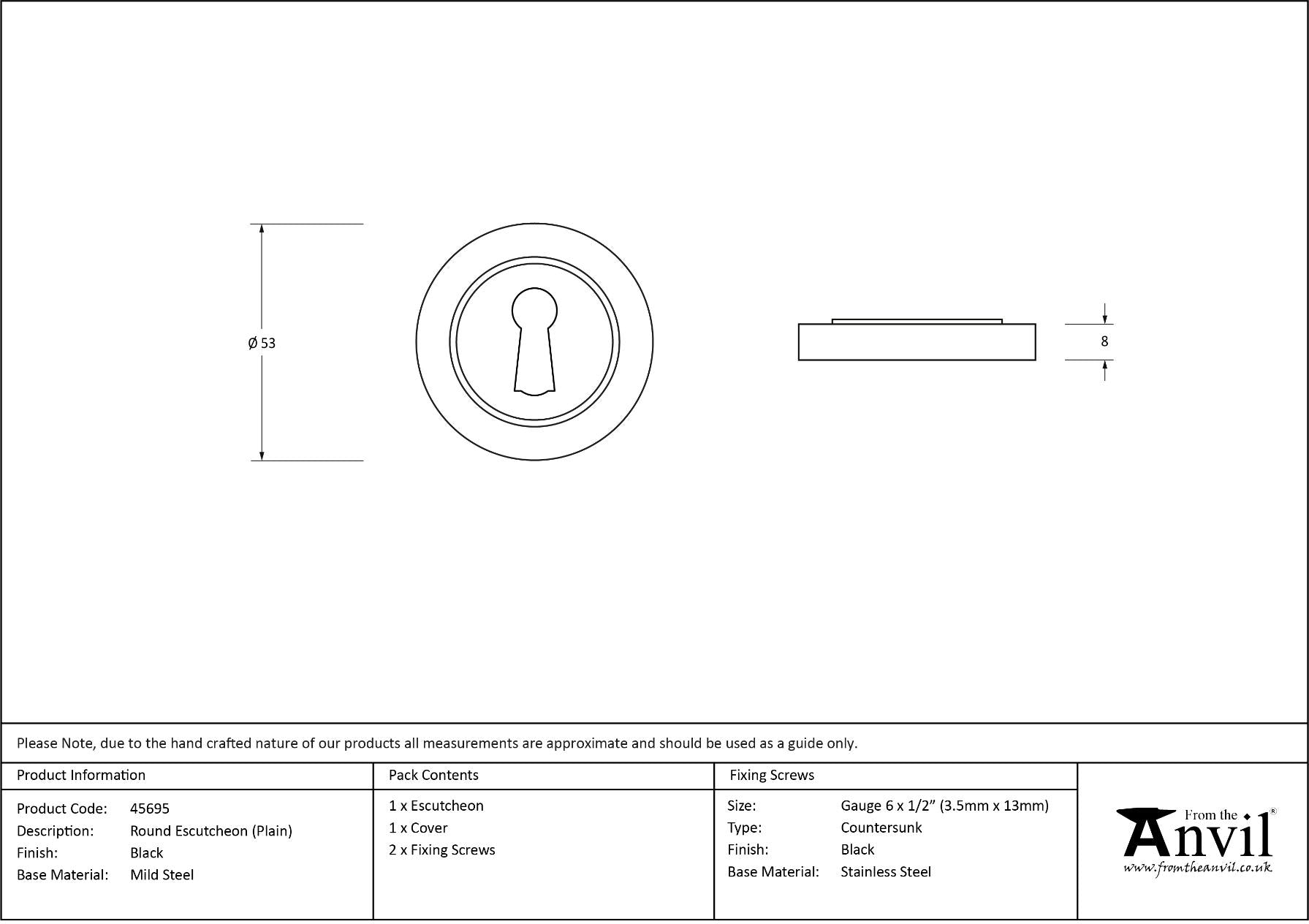 Thickness: 8mm Our vast range of escutcheons are designed as a finishing touch for all locking doors and are used to decorate key holes. This concealed escutcheon features a simple plain cover which matches a number of other products and adds a contemporary edge to a traditional looking product. Our escutcheons complement all of our mortice knob and lever on rose designs. This escutcheon uses a standard key hole so can be used with a multitude of locks. Supplied with matching SS wood screws.