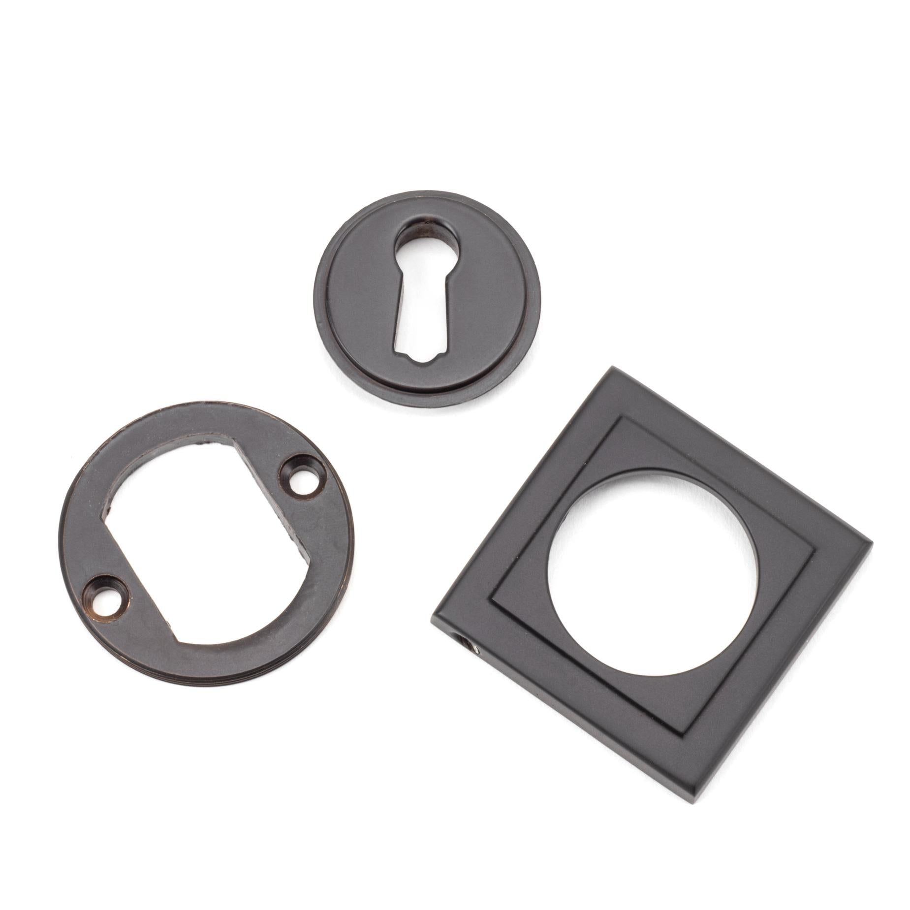 Thickness: 8mm Our vast range of escutcheons are designed as a finishing touch for all locking doors and are used to decorate key holes. This concealed escutcheon features a simple square cover which adds a contemporary edge to a traditional looking product. Our escutcheons complement all of our mortice knob and lever on rose designs. This escutcheon uses a standard key hole so can be used with a multitude of locks. Supplied with matching SS wood screws.