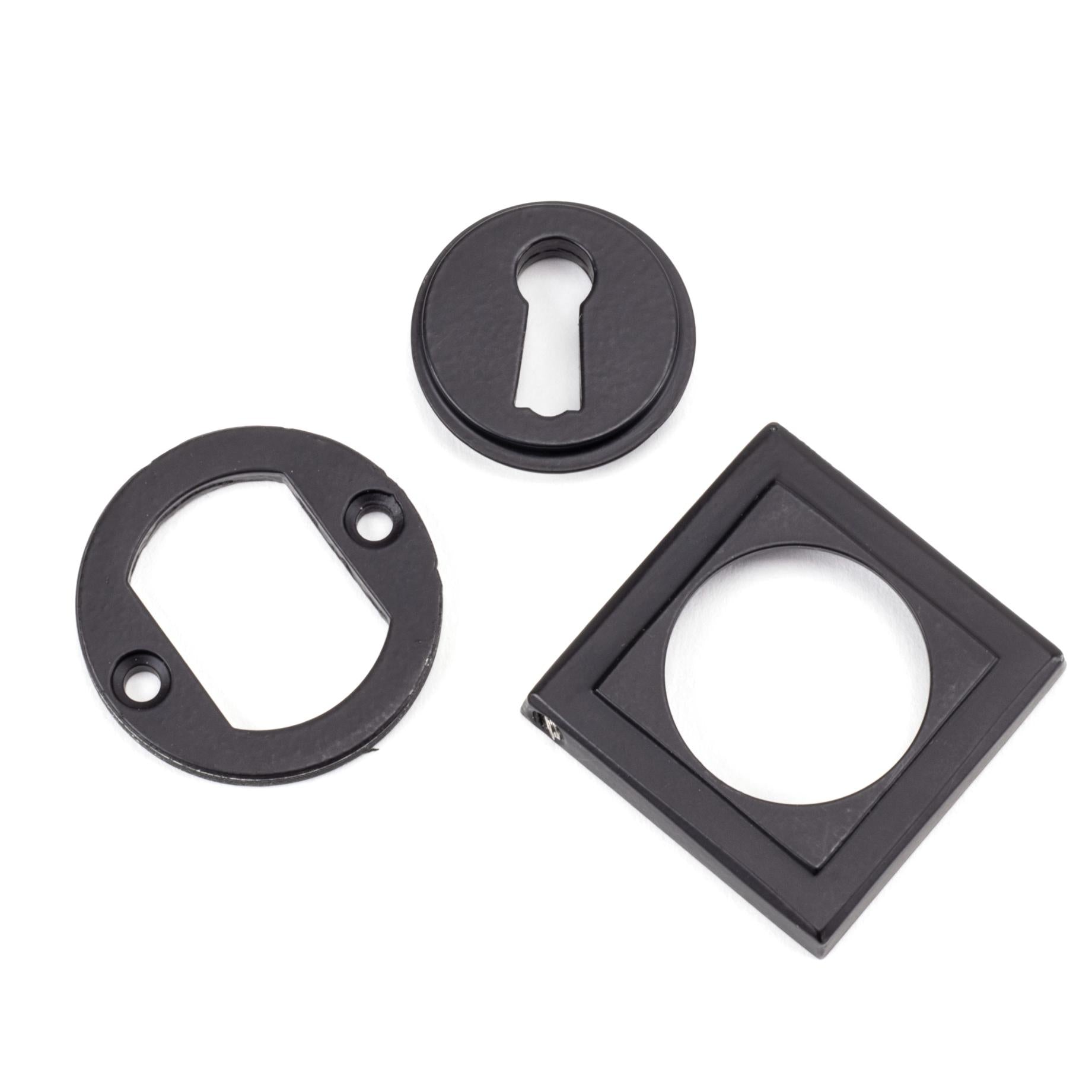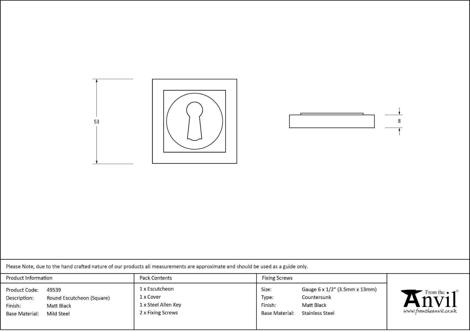 Thickness: 8mm Our vast range of escutcheons are designed as a finishing touch for all locking doors and are used to decorate key holes. This concealed escutcheon features a simple square cover which adds a contemporary edge to a traditional looking product. Our escutcheons complement all of our mortice knob and lever on rose designs. This escutcheon uses a standard key hole so can be used with a multitude of locks. Supplied with matching SS wood screws.