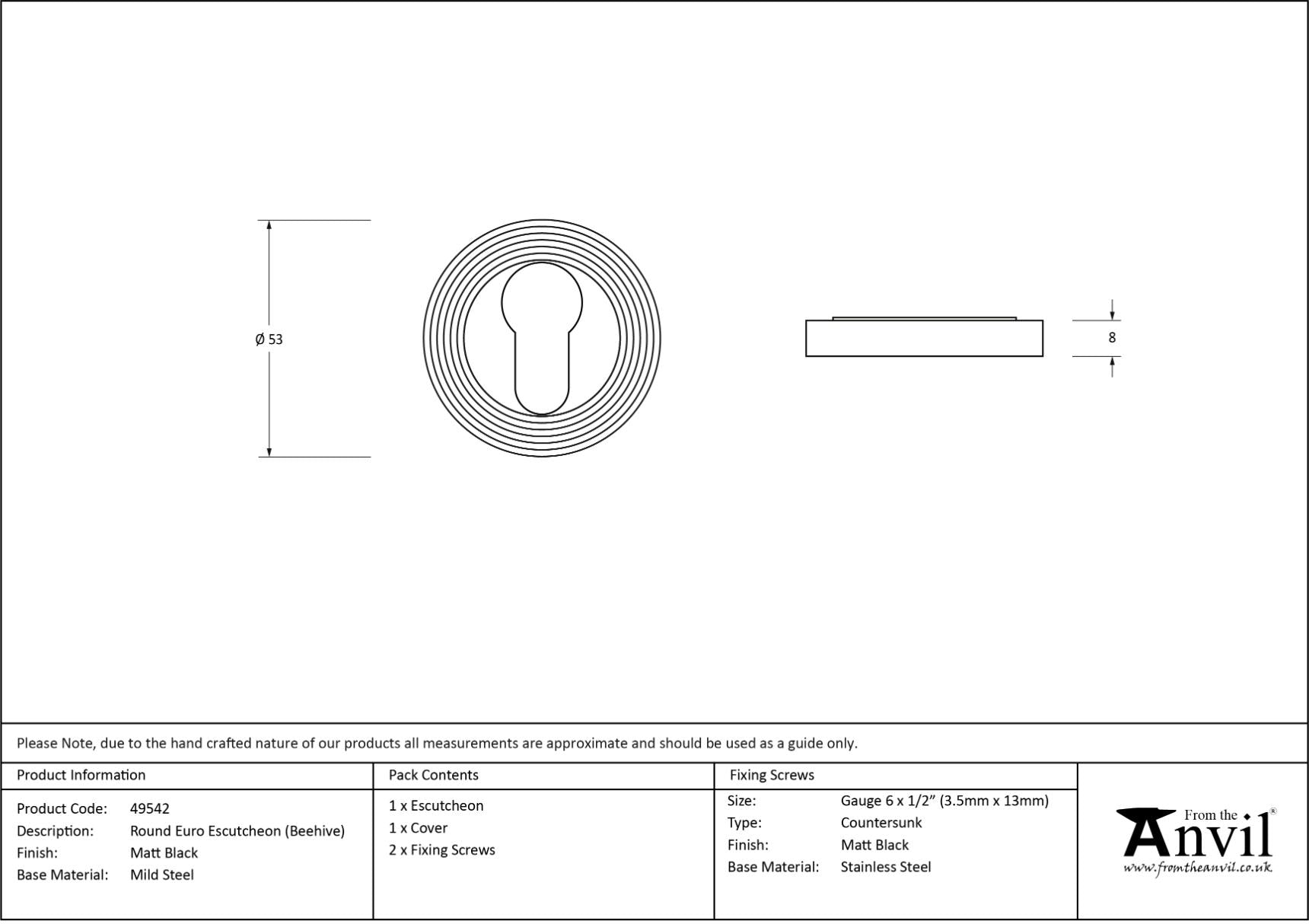 Thickness: 8mm Our vast range of escutcheons are designed as a finishing touch for all locking doors and are used to decorate key holes. This concealed escutcheon features a decorative beehive cover which matches a number of other products in our range and adds a contemporary edge to a traditional looking product. Our escutcheons complement all of our mortice knob and lever on rose designs. This escutcheon is used with a euro profile lock in conjunction with a euro cylinder. Supplied with matching SS wood screws.