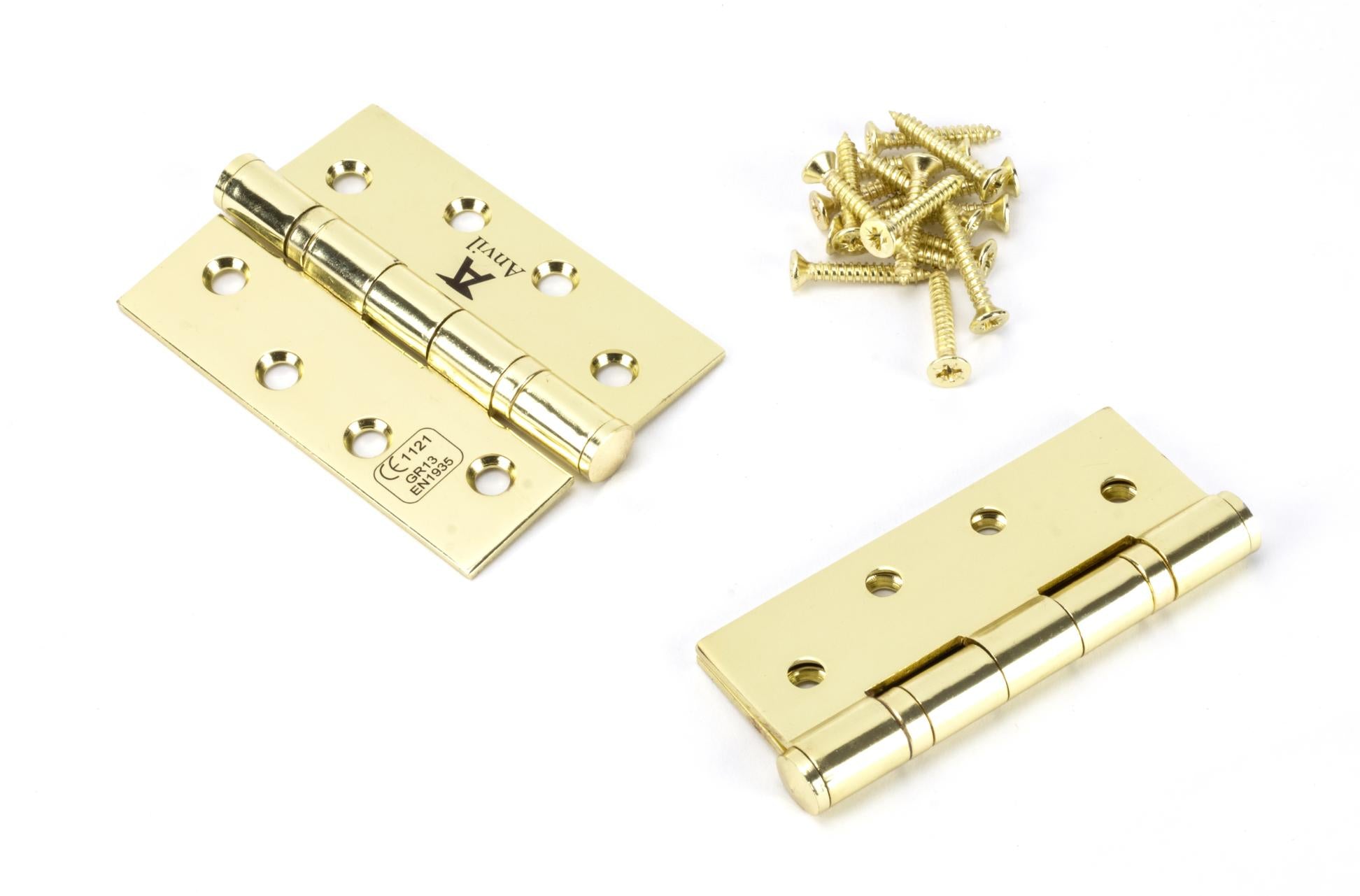 49573 Polished Brass 4" Ball Bearing Butt Hinge (pair) ss