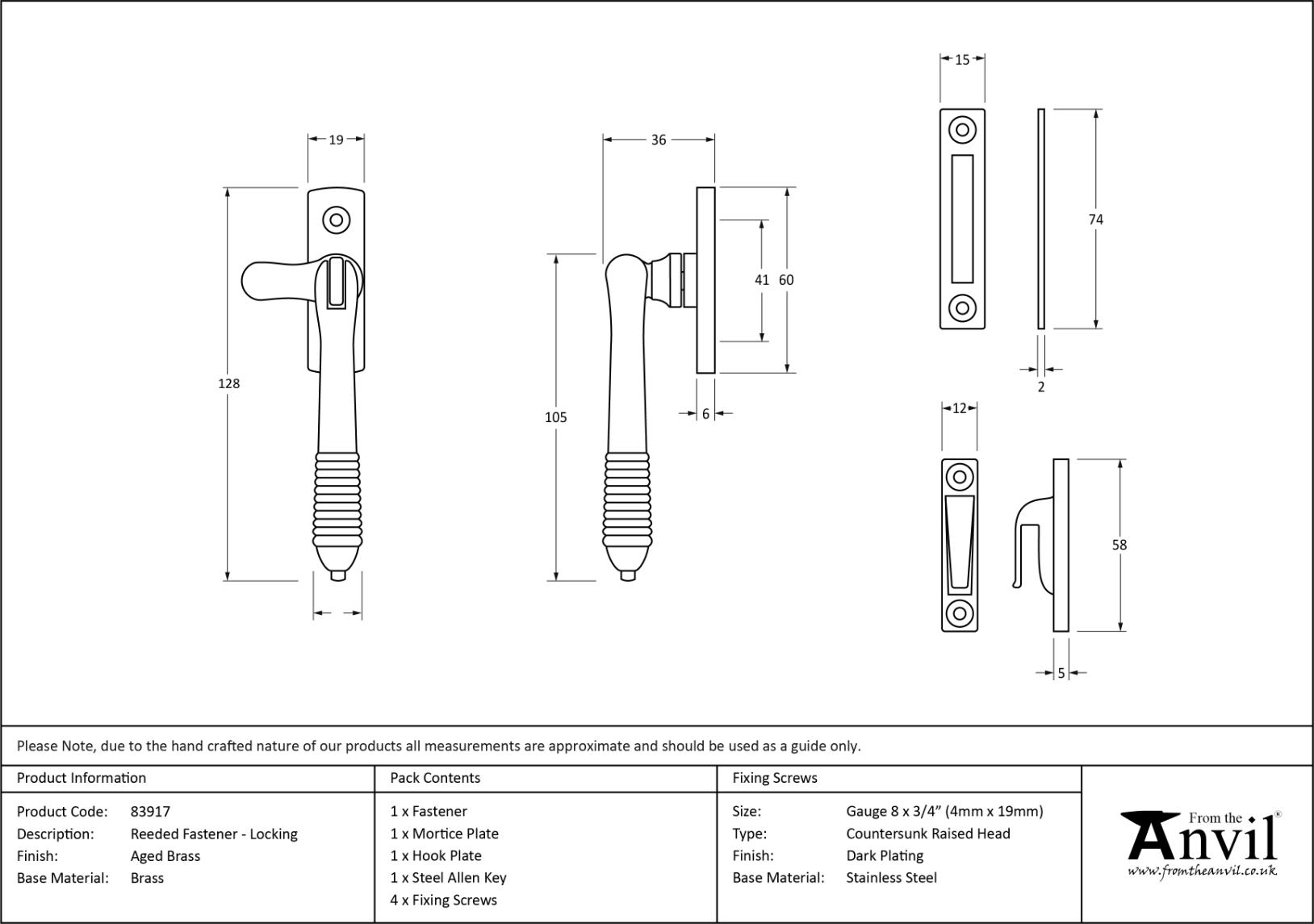 Hook Plate Size: 58mm x 12mm x 5mm The reeded handle is part of the period range of window furniture. A classic regency design with a stylish reeded end that will suit both traditional and contemporary settings. Our weighty reeded window handle range is forged from solid brass which emphasises the high quality materials and manufacturing techniques used. A perfect design choice to use throughout your property with many other matching products available. Designed to fit casement windows and match the reeded stays and door handles in the range. Reversible design and includes mortice and hook plates for different fitting options. The fastener has a locking mechanism by way of a grub screw. Suitable for use with weather-stripped windows. Supplied with matching SS wood screws.