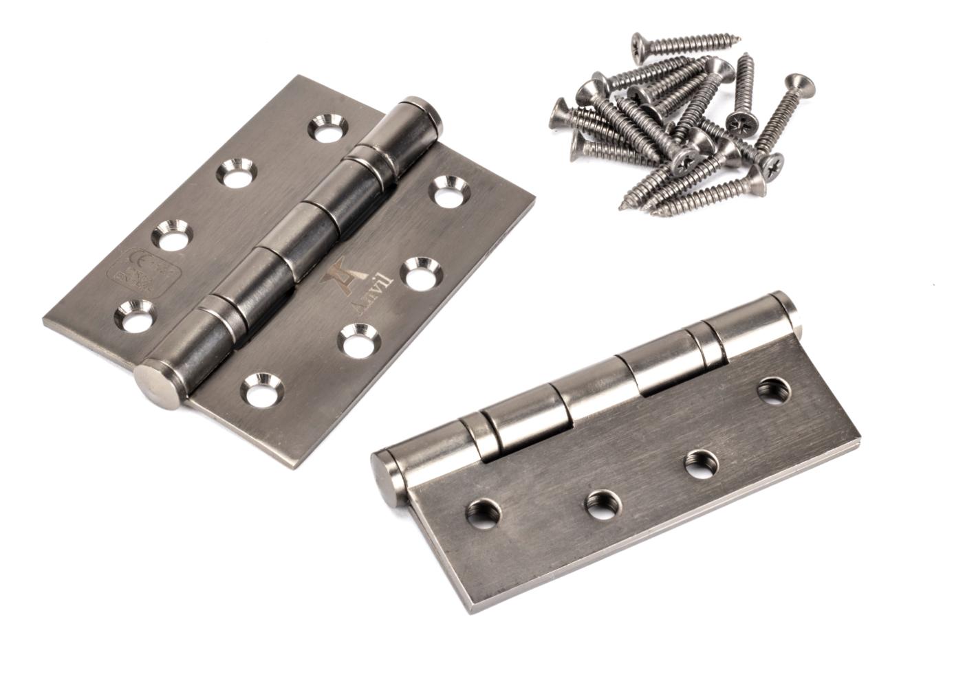 Thickness: 3mm Manufactured with ball bearings in the knuckle to provide extra strength and a smooth action that will last for many years. A pair and a half (3 hinges) can be fitted to provide extra strength for heavier doors. Manufactured from grade 304 stainless steel. Supplied as a pair. Supplied with matching SS wood screws.