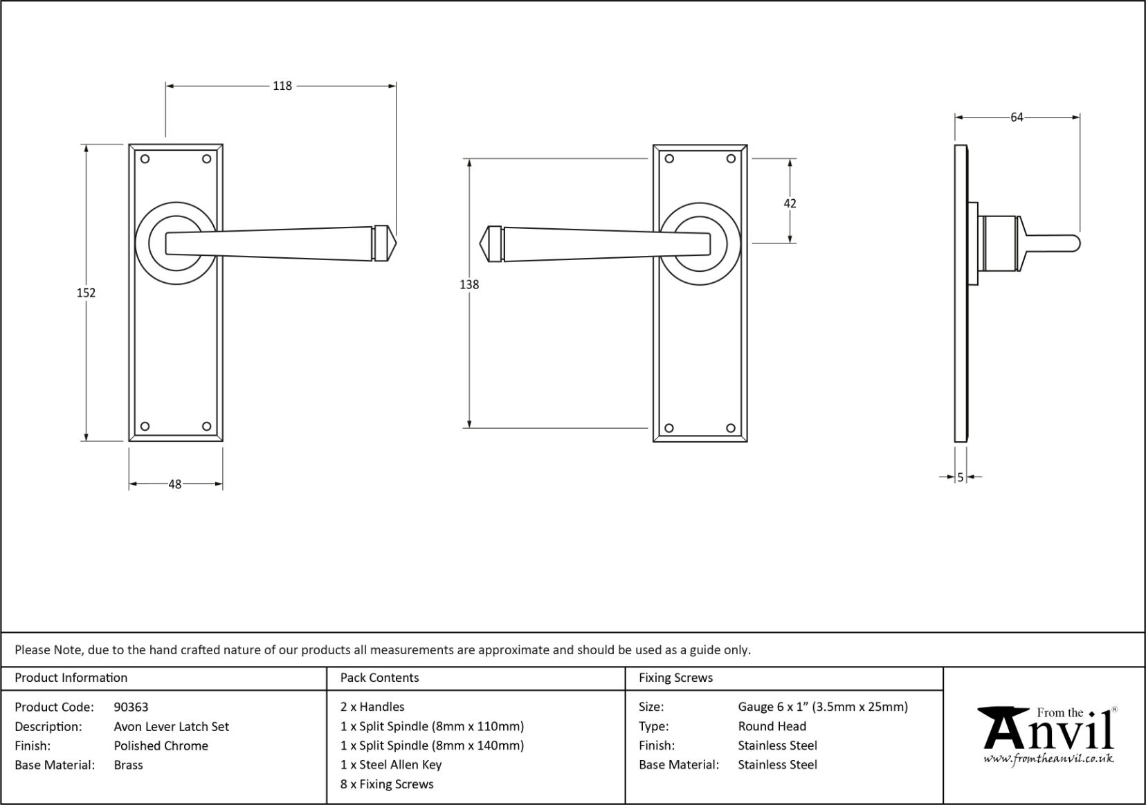 Handle Length: 118mm Our avon lever handles are our signature design and are extremely popular for their simplicity. The lever is hammered into shape by hand, giving it a contemporary yet individual edge. Designed to match the avon window furniture in the range. This handle has a strong spring incorporated into the stylish boss design to give both functionality & elegance. Lever handle for internal doors where locking is not required. Set includes 2 lever latch handles. Can be used with a tubular mortice latch. Supplied with matching SS wood screws.
