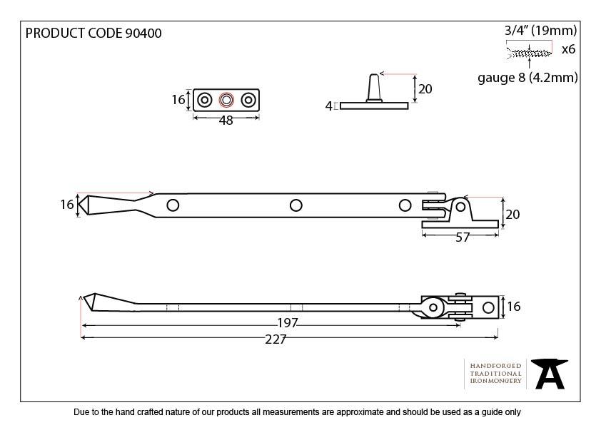 Fixing Plate: 57mm x 16mm The simple avon design is both contemporary and traditional, fitting into all settings. This four sided design is created by hand with a series of hammer blows. Designed to match the avon window fasteners in the range. Available in three different sizes. Supplied with matching SS wood screws.