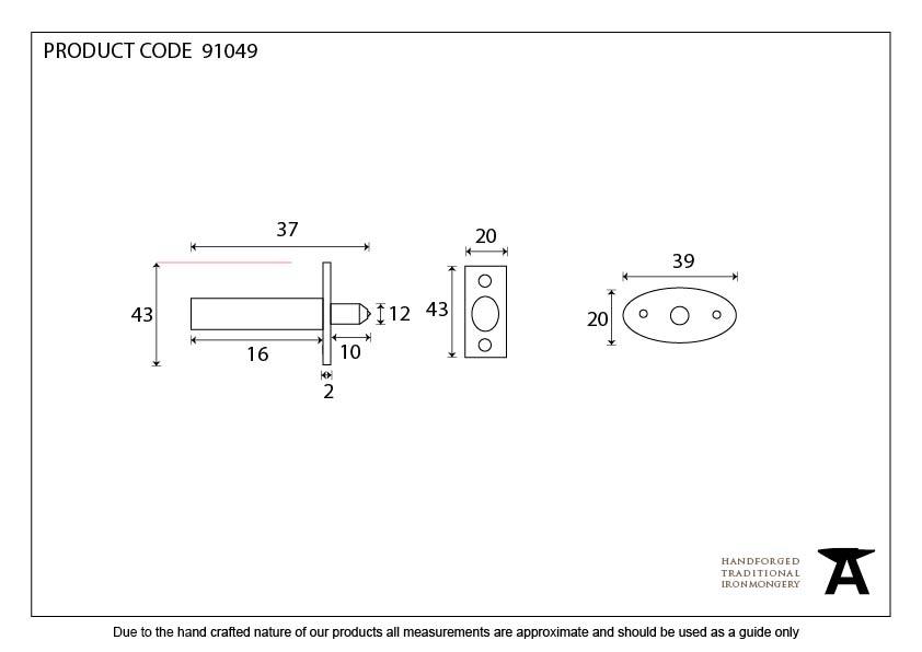 Oval Receiver Plate Size: 38mm x 20mm x 2mm
