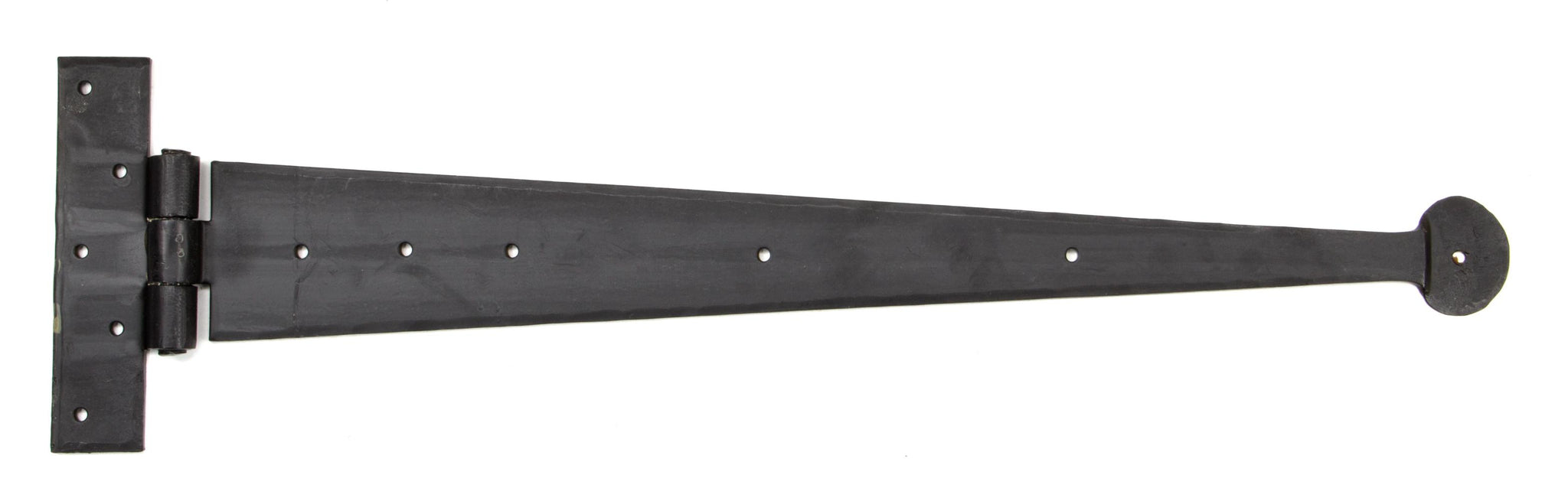 Fixing Plate: 152mm x 38mm When opened a t hinge has the appearance of a letter 'T'. An alternative to butt hinges, tee hinges are usually used in conjunction with a suffolk latch on traditional plank doors. A pair and a half (3 hinges) can be fitted to provide extra strength for heavier doors. Our blacksmith t hinges are hammered into shape from mild steel using the traditional manufacturing method of an anvil and fire. Supplied as a pair. Supplied with matching SS wood screws.