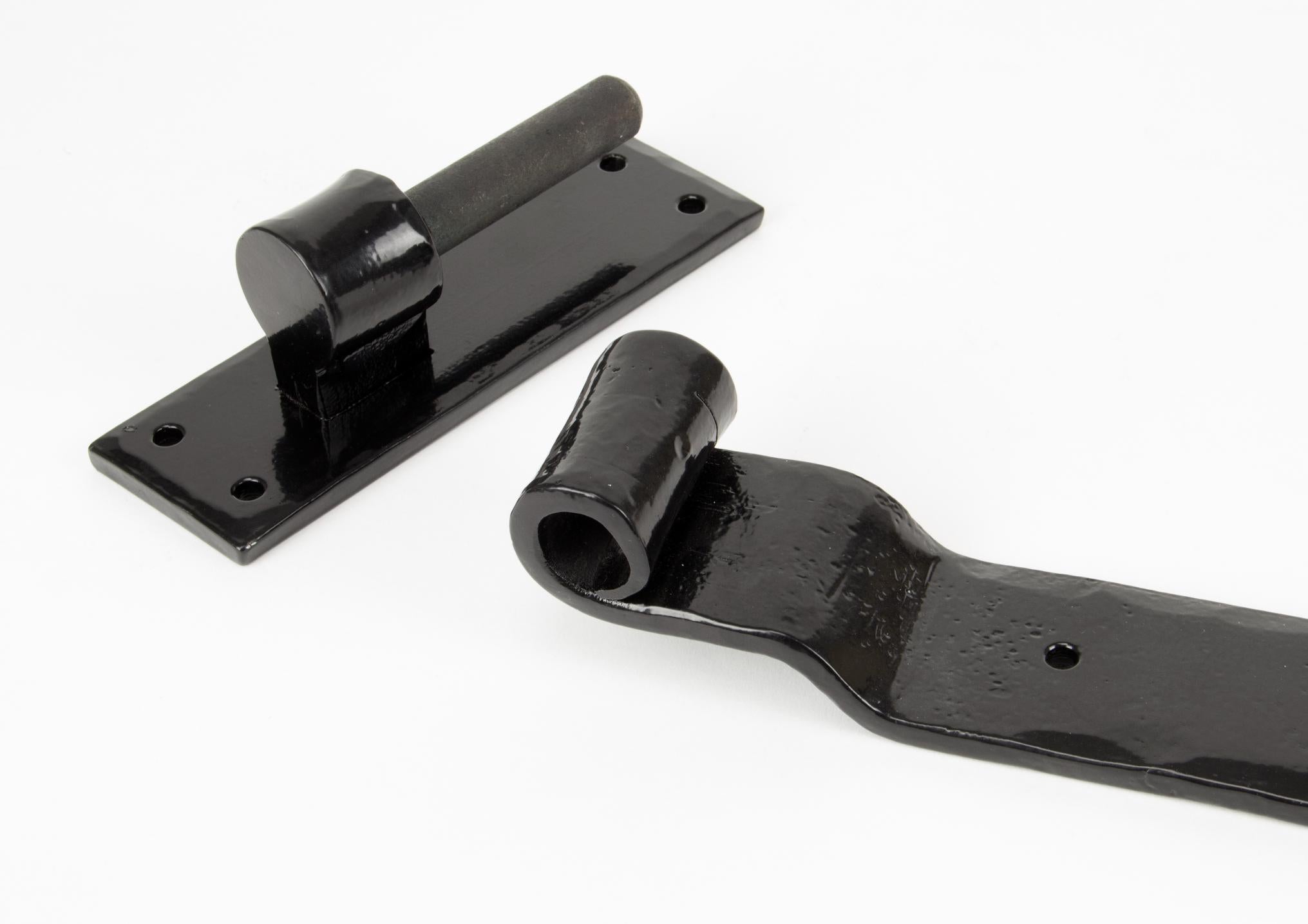 Pin Diameter: 15mm When opened a tee hinge has the appearance of a letter 'T'. An alternative to butt hinges, tee hinges are usually used in conjunction with a suffolk latch on traditional plank doors. Our blacksmith tee hinges are hammered into shape from mild steel using the traditional manufacturing method of an anvil and fire. Band is hinged on the pin attached to the fixing plate. Cranked hinge allows door to be flush with the surface of the frame. Suitable for heavy doors and gates. Supplied as a pair. Supplied with matching SS wood screws.