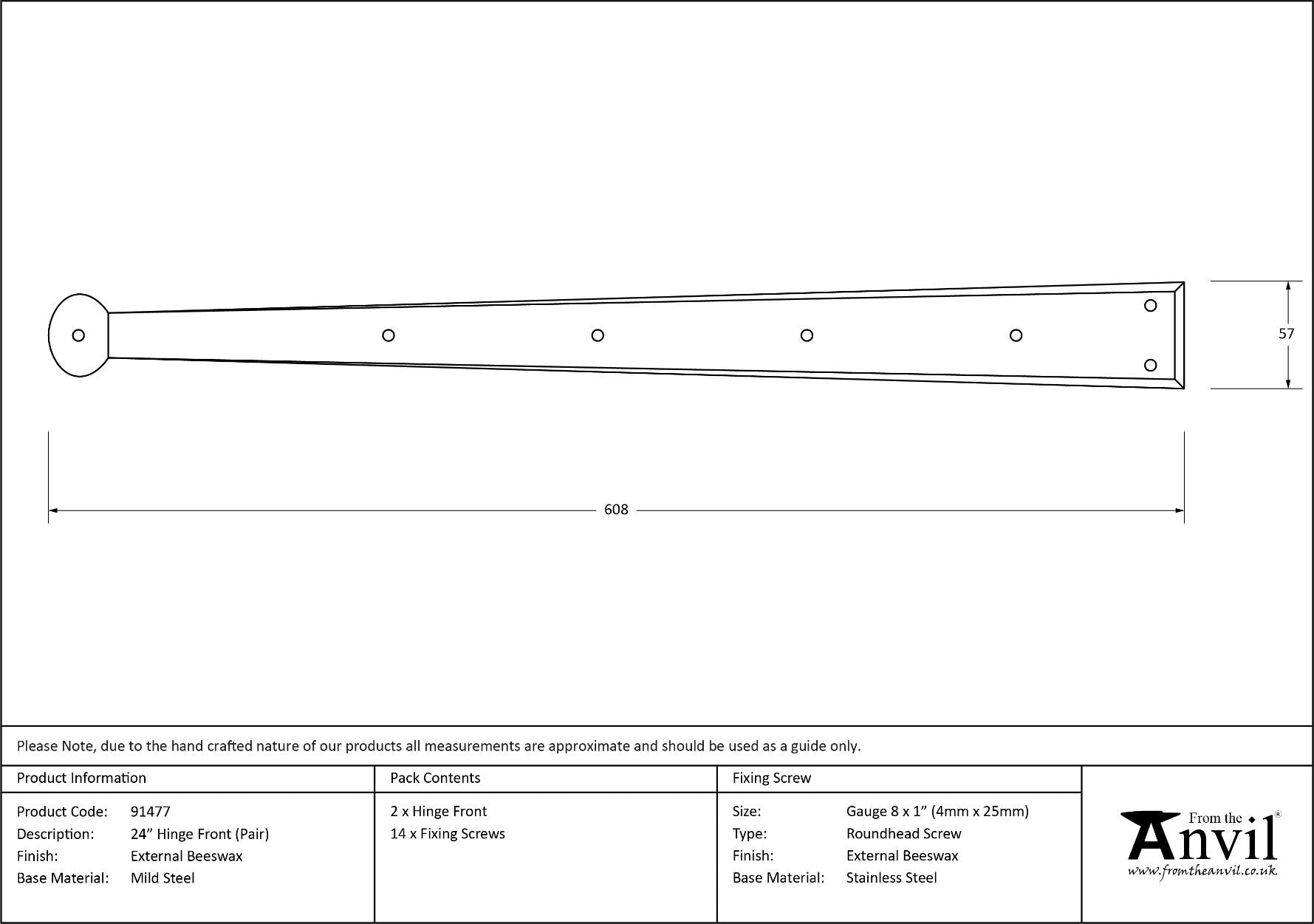 Our hinge fronts can be pairs with butt hinges to give a traditional look and feel to an existing or new door. Our blacksmith hinge fronts are hammered into shape from mild steel using the traditional manufacturing method of an anvil and fire. Supplied as a pair. Supplied with matching SS wood screws.