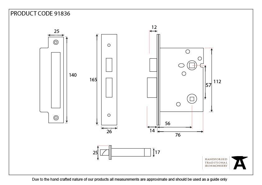 Forend Size: 165mm (L) x 26mm (W) British Standard insurance rated heavy duty 5 lever bathroom lock. For use with any of our 57mm centre bathroom lever handles or knobs and separate thumbturns. Will match any of our aged brass or polished brass products. Suitable for use on 30/60 minute fire doors. We recommend using a 3" sash lock with our knob sets. Supplied with matching SS wood screws.