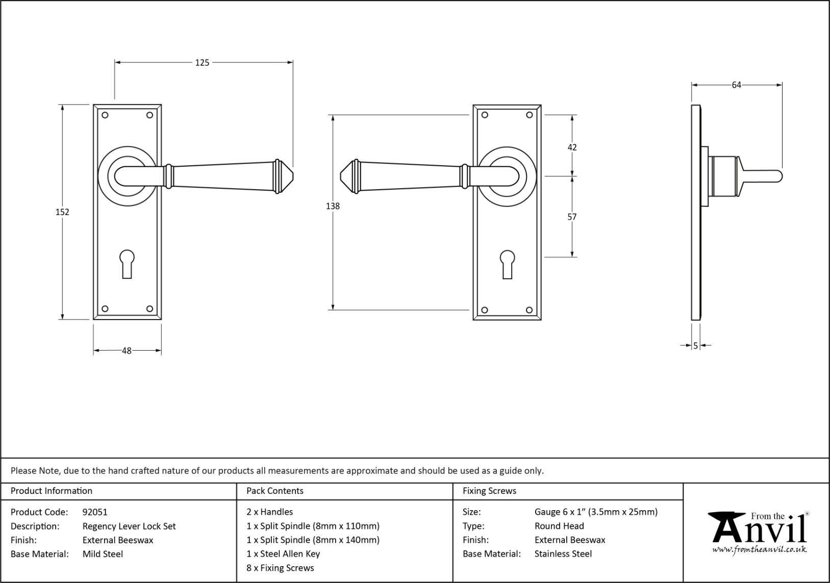 Centres: 57mm Our regency lever collection is a popular choice for many properties and features a simple square edged backplate, which is complemented with a smooth rounded lever. Designed to match the regency window furniture in the range. This handle has a strong spring incorporated into the stylish boss design to give both functionality & elegance. Lever handle for internal and external doors where locking is required. Set includes 2 lever lock handles. Can be used with a 5 lever sash Lock BS. Supplied with matching SS wood screws.