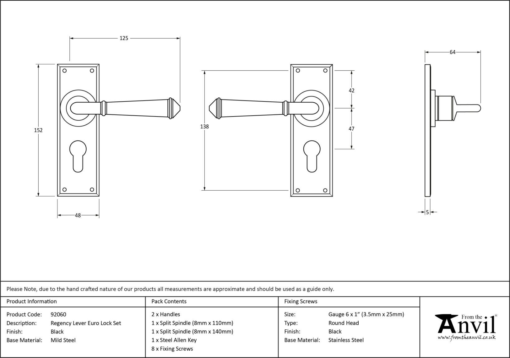 Centres: 47mm Our regency lever collection is a popular choice for many properties and features a simple square edged backplate, which is complemented with a smooth rounded lever. Designed to match the regency window furniture in the range. This handle has a strong spring incorporated into the stylish boss design to give both functionality & elegance. Lever handle for internal and external doors where locking is required. Set includes 2 lever euro handles. Can be used with an euro sash lock in conjunction with a euro cylinder. Supplied with matching SS wood screws.