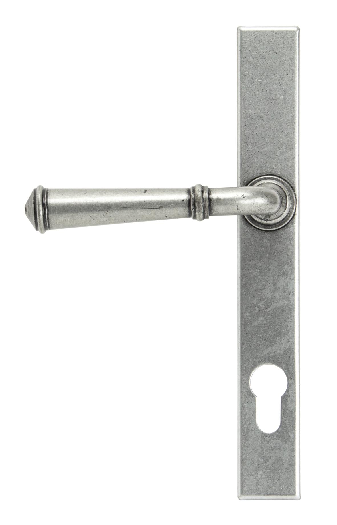 Fixing Centres: 212mm Our regency lever collection is a popular choice for many properties and features a simple square edged backplate, which is complemented with a smooth rounded lever. Designed to match the regency window furniture in the range. This handle has a strong double spring incorporated into the stylish boss design to give both functionality & elegance. Lever handle for external doors where multi-point locking is required. Set includes an internal and external lever espag lock handle. Can be used with a multi-point lock or french door kit in conjunction with a euro cylinder. Supplied with matching SS bolt through fixings.